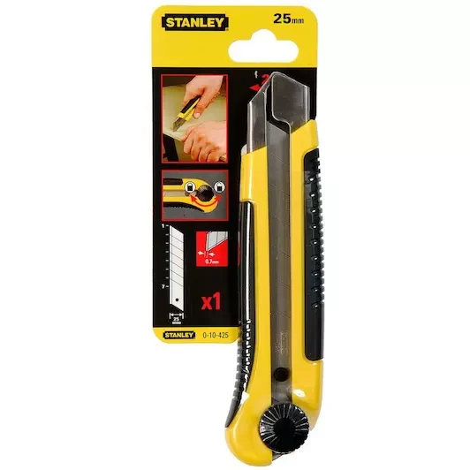Stanley roestvrij afbreekmes Dynagrip® 25mm met blokkeerschroef voor veiligheid en nauwkeurigheid. Inclusief één afbreekmesje.