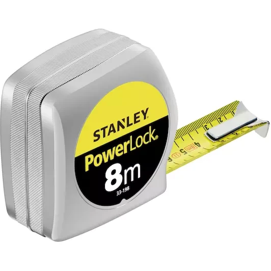 Stanley rolbandmaat POWERLOCK® classic - 8m - 25mm - met verchroomd huis van schokvaste ABS en de band is voorzien van een Mylar®-deklaag.